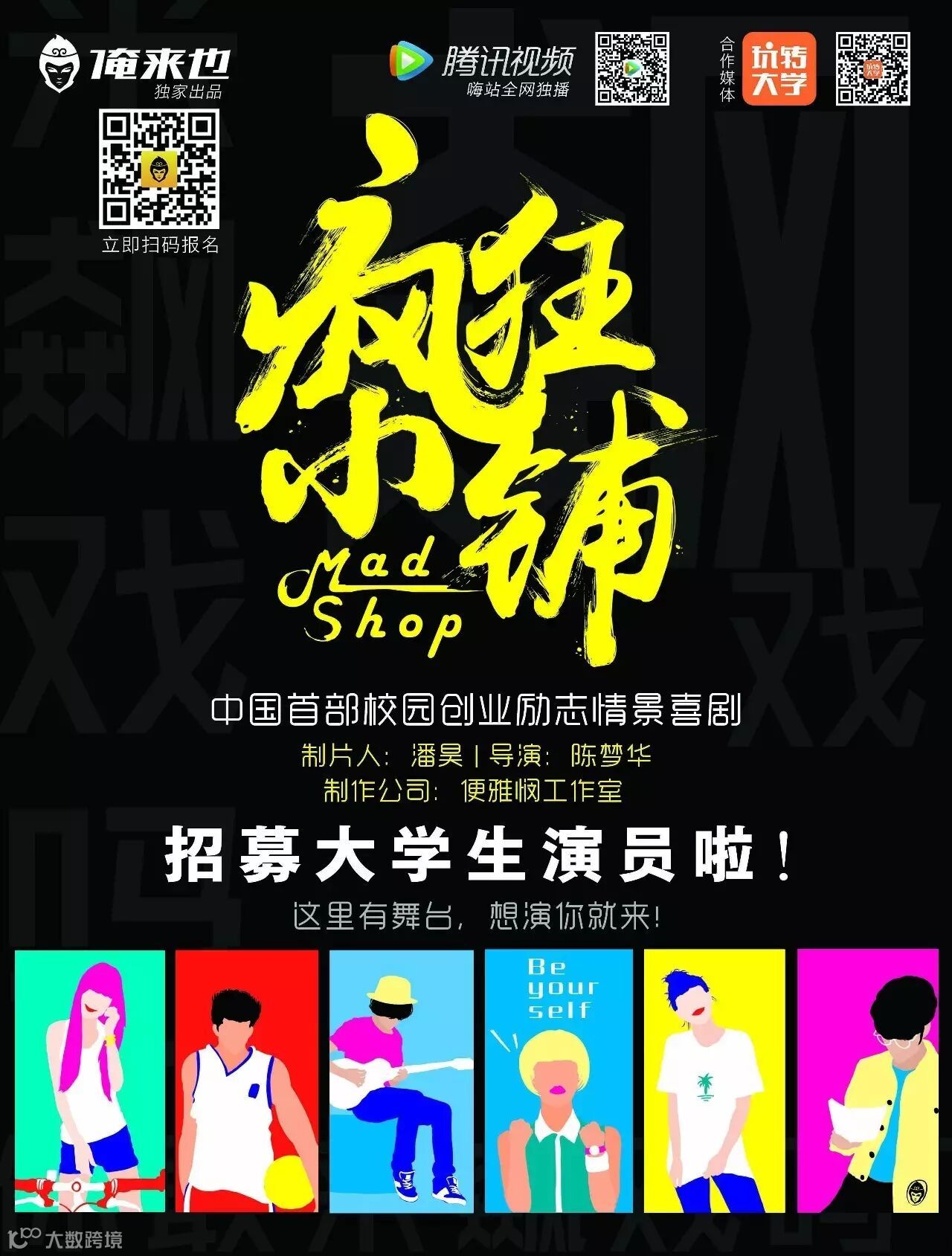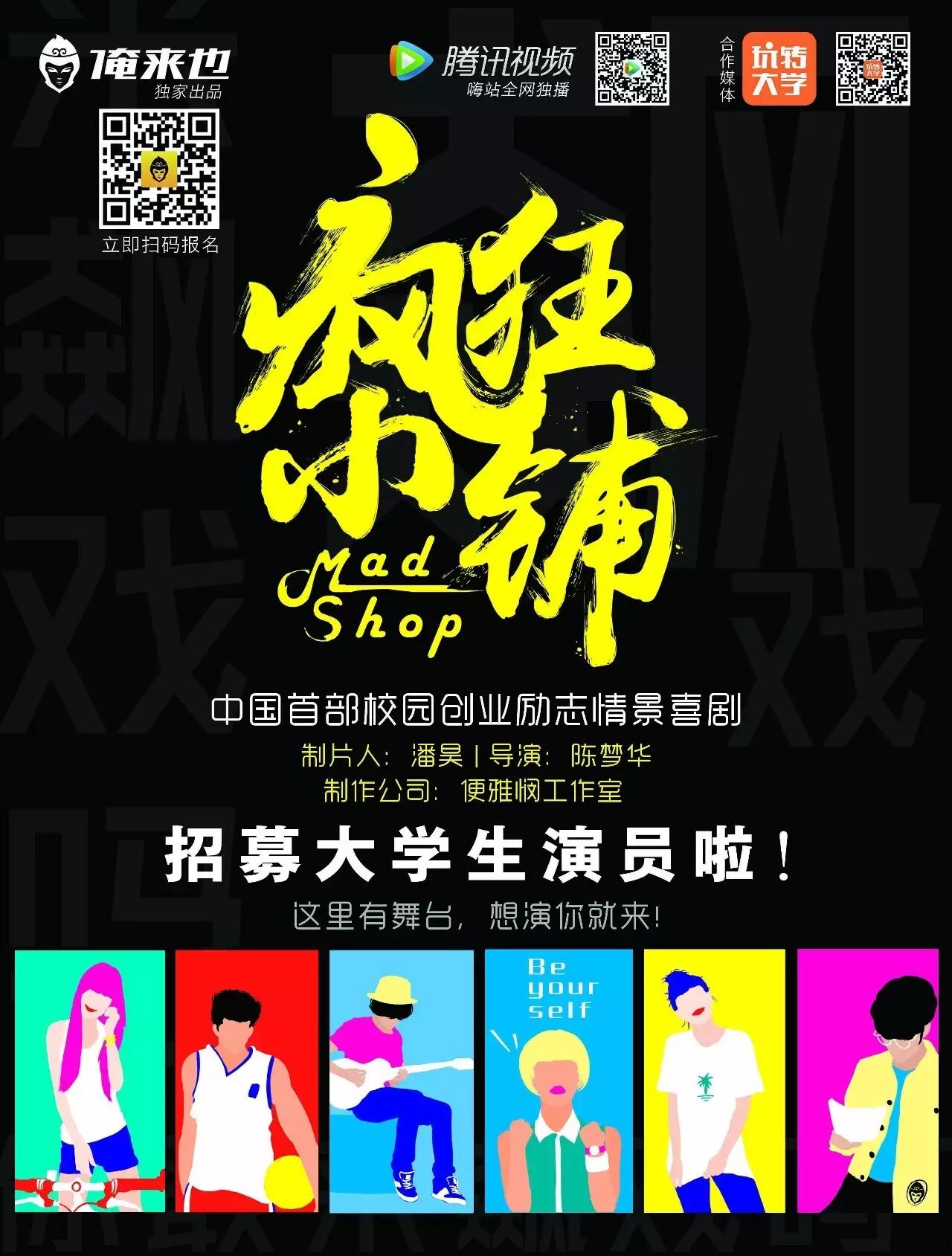 俺来也《疯狂小铺》剧组将会在南京市、北京市、成都市三个城市进行海选试镜,并邀请著名的表演导师为大家上演精彩纷呈的影视表演交流会。