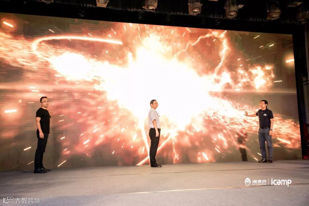随后,宋来,以及俺来也创始人&CEO孙绍瑞、俺来也联合创始人刘群智,手按大屏幕,共同点燃创业之火!