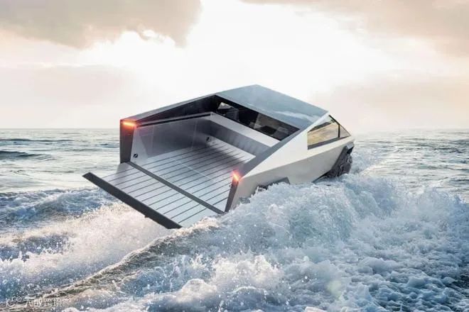 另外一个让特斯拉迷们高兴的事儿是:马斯克宣布 Cybertruck 电动皮卡能实现高度涉水,最终实现自行漂浮。