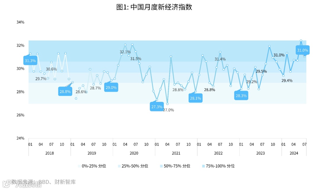 财新智库和BBD(数联铭品)8月2日联合发布的数据显示,7月NEI录得31.0,即新经济投入占整个经济投入的比重为31.0%,比上月下降1.4个百分点。