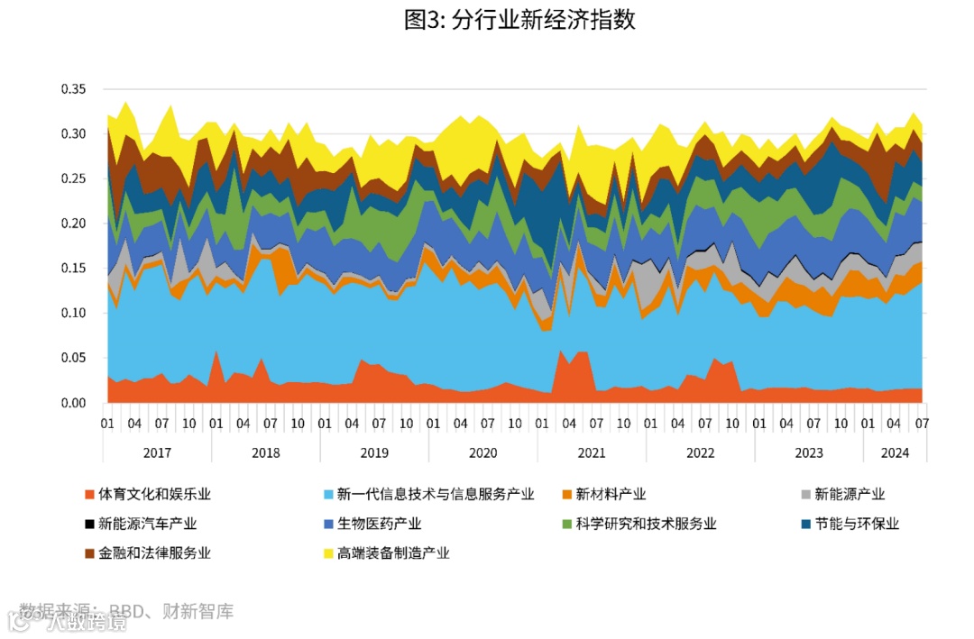 新经济指数旨在度量中国经济转型中新经济相对于传统经济或旧经济的活跃程度。新经济指数覆盖了节能环保、新一代信息技术与信息服务、生物医药、高端装备制造、新能源、新材料、新能源汽车、高新技术服务与研发、现代金融与法律服务、体育文化和娱乐等10个类别、145个细分行业。