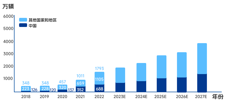 目前,我国已经是全球最大的新能源汽车产销国,2022年中国新能源汽车销量达688万辆,在全球的市场份额占比近40%。未来随着产能的持续扩张,相关基础设施的持续完善以及国家一系列支持政策的引导,预计我国的新能源汽车产业将持续快速发展。