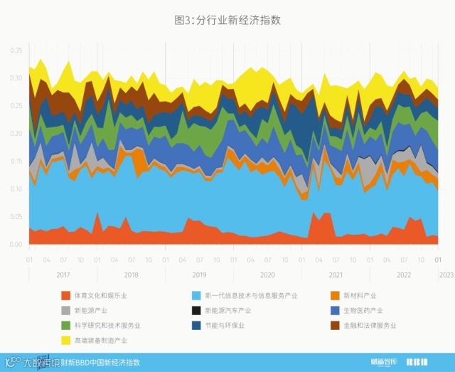 财新智库和BBD(数联铭品)2月2日联合发布的数据显示,2023年1月NEI录得28.3,即新经济投入占整个经济投入的比重为28.3%,较上月下降1.4个百分点。