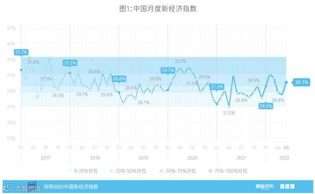 报告称,2020年初新冠疫情暴发后,新经济指数有过连续数月的增长,自2020年中开始,随着国民经济逐步恢复,旧经济回归强势,新经济指数呈下降趋势。2021年至2022年二季度,新经济指数波动回升。
