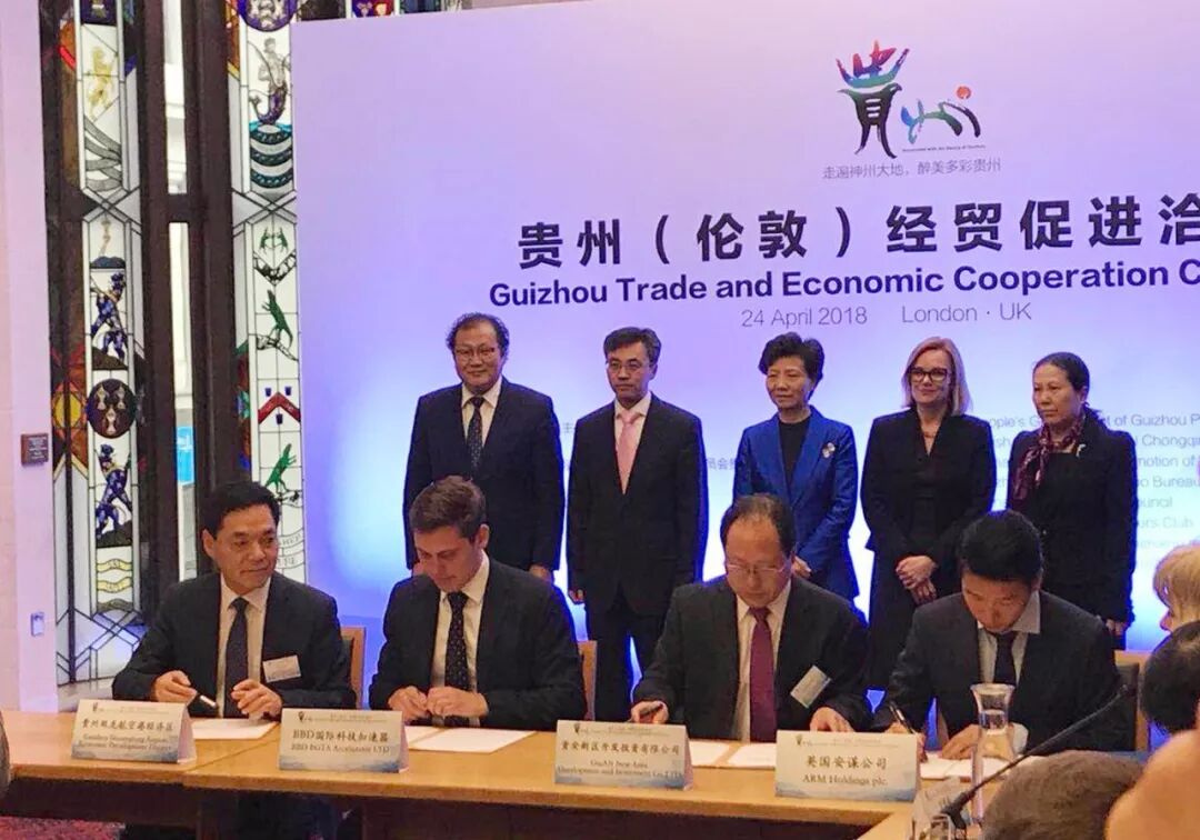 当地时间4月24日,贵州(伦敦)经贸促进洽谈会在伦敦举行。贵州省省长谌贻琴、贵州省发改委主任陈少波、贵州省贸促会常务副会长张汉林、英国外交部全球化司布洛内特(Bronnert)、中国驻英国大使馆公使祝勤等出席。BBD数联铭品、贵州茅台等作为重点企业代表参与。