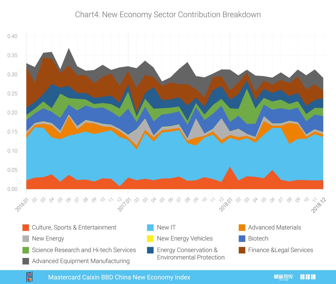 As for sectors, the New IT industry formed the largest proportion of the New Economy Index, contributing 11.3 ppts to NEI. Biotech was the industry with fastest growth in December, contributing 4.2 ppts and ranking the second. Finance & Legal Services came seventh from second, the fastest drop in ranking, contributing 2.0 ppts in December (Chart 4).
