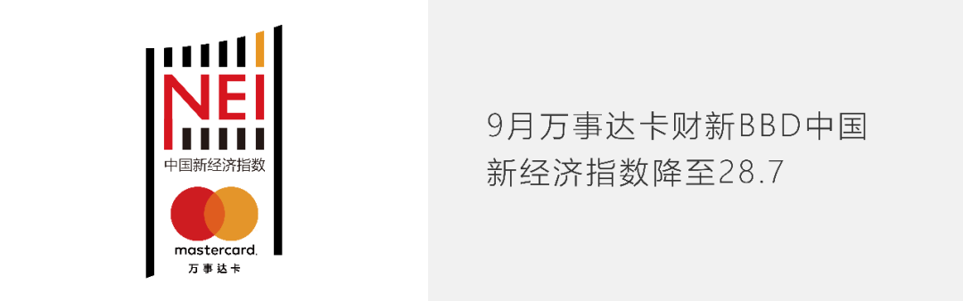 2019年9月万事达卡财新BBD 中国新经济指数(NEI)录得28.7指数年初探底后波动回升