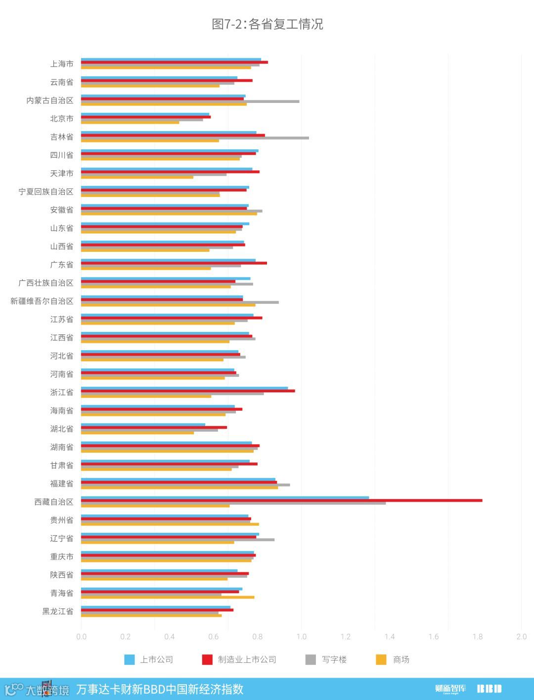 制造业上市公司平均复工率约为82%,零售、餐饮、娱乐等服务业的完全恢复尚需时日。