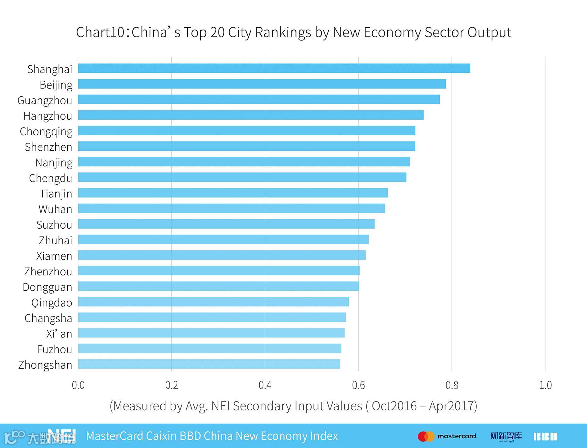 Chart 11 showed the average NEI city rankings between October 2016 and April 2017. The top five cities are Beijing, Hangzhou, Shanghai, Guangzhou, and Shenzhen.
