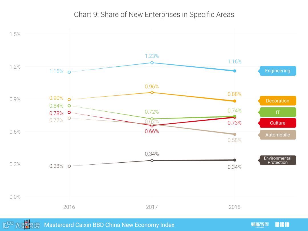 Chart 9 showed the share of new enterprises in specific areas in October 2016, October 2017, and October 2018. The share of new enterprises in 2017 top-ranked Engineering and Decoration declined in this month, while that in IT and culture went down and up. Besides, sub-sector of Automobile was ranking down in two consecutive years and Environmental Protection sector was experiencing two years of expanding.