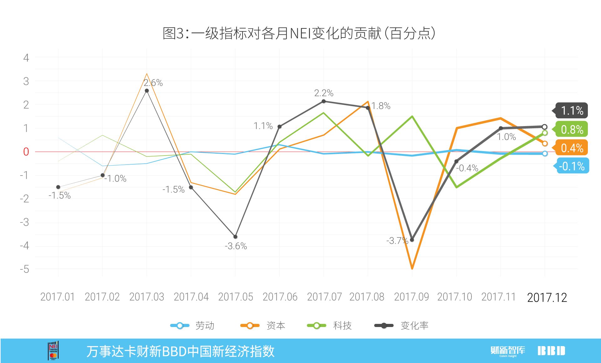 考虑对应权重,劳动力、资本和科技投入的变化对NEI变化分别贡献-0.1,0.4,和0.8个百分点,总计1.1个百分点(图3)。