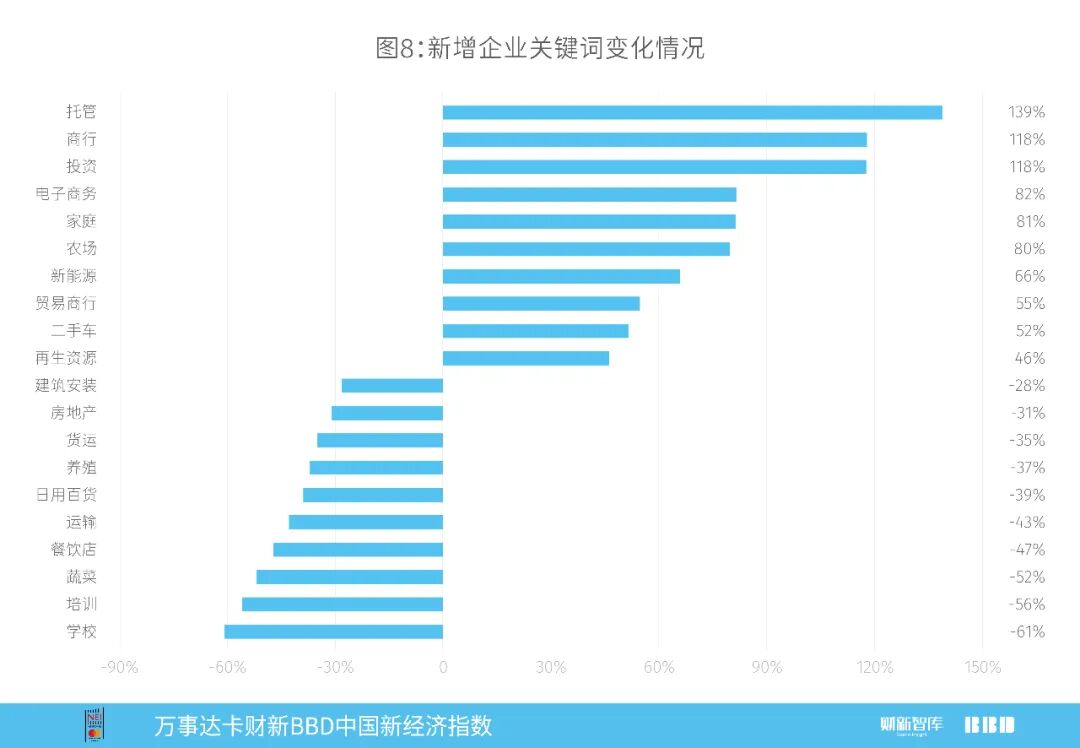 此外,报告分析了过去一年新注册企业数量增加最快和缩减最快的十个企业关键词。