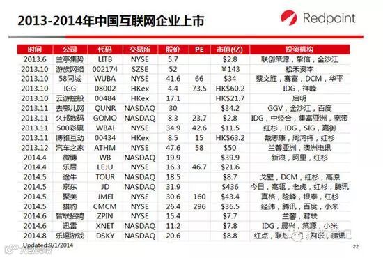 美国资本市场已从2008年经济危机中全面复苏。2013年IPO数量达到82家,IPO重新替代并购成为主要退出渠道,其中中国2013年上市10家,2014年上半年上市8家。