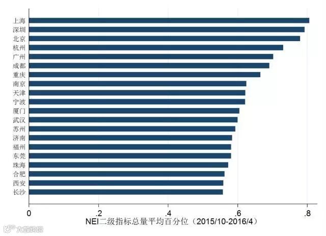 图6、城市新经济总量排名前20名(2015/10-2016/4平均值)