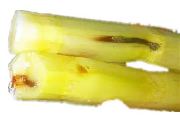 变质的甘蔗里面呈黑、棕褐色,吃起来有酒精味。这是甘蔗受了串珠镰刀菌感染并产生了毒素所致。