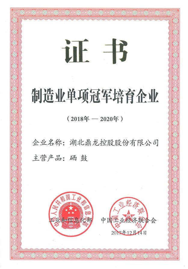 - 制造业单项冠军证书 -