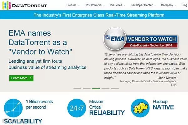 上榜理由: DataTorrent认为,他们可以很好的解决数据延迟问题,尤其是对实时数据分析要求很高的环境中。