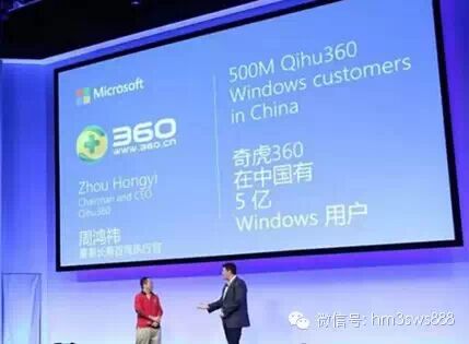 周鸿祎表示:“微软是360战略合作伙伴,双方在安全领域有着深入的合作,此次在Win 10上的深度合作,将两家公司的合作提升到了一个更高的水平。”