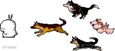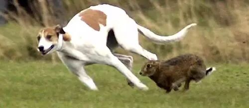 一天猎人带着猎狗去打猎。 猎人一枪击中一只兔子的后腿,受伤的兔子开始拼命地奔跑。猎狗在猎人的指示下也是飞奔去追赶兔子。