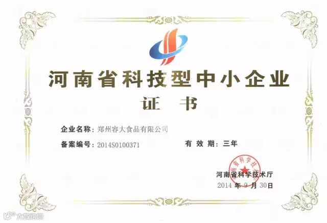 喜大普奔!这个5月,郑州市中小企业服务局传来喜讯:郑州容大食品有限公司入围郑州市“专精特新”中小企业名单,是105家入围企业中唯一的食品企业。