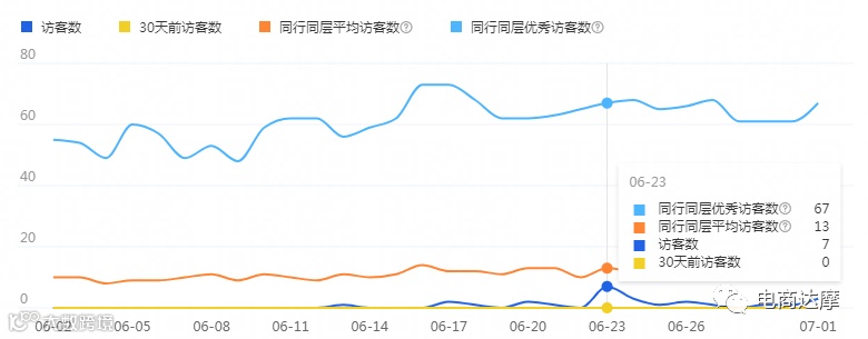 那么在看到这个数据之后,我们就可以去做一个对比分析。其实我们这个访客的下跌实际上和大盘是没有什么实质性原因的。