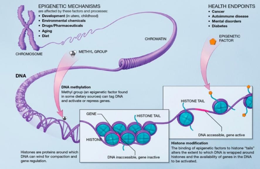 当然,既然是化学修饰,那么修饰的过程自然也会受到外界因素的影响。一些因素会激活/抑制细胞内特定的信号通路,从而可逆/不可逆地改变某些基因的甲基化和乙酰化修饰水平。其中一些变化如果写入到生殖细胞中,就有可能遗传给下一代。