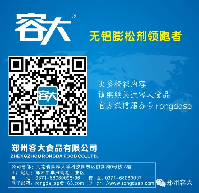 再以油条为例,传统生产油条为了达到酥脆口感需要加入明矾和碱,明矾的一个主要成分是铝,这就是油条“铝超标”的直接原因。容大不含铝的无铝油条膨松,同样能够让油条酥脆,口感香甜,色泽金黄,助力企业生产真正无铝美味、安全可口的放心油条。