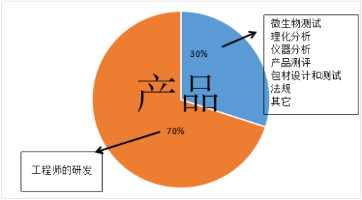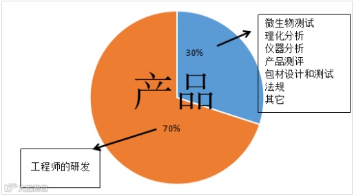 2、开发好的产品需要多个部门的合作:打个比喻,如果说一个好的配方可以打100分的话,配方工程师可能通过自身的努力可以使配方达到70分,微生物测试、理化分析、仪器分析、产品测评、包材设计和测试、法规等功能块共同贡献后面的30分。