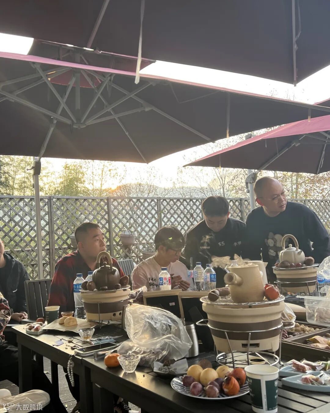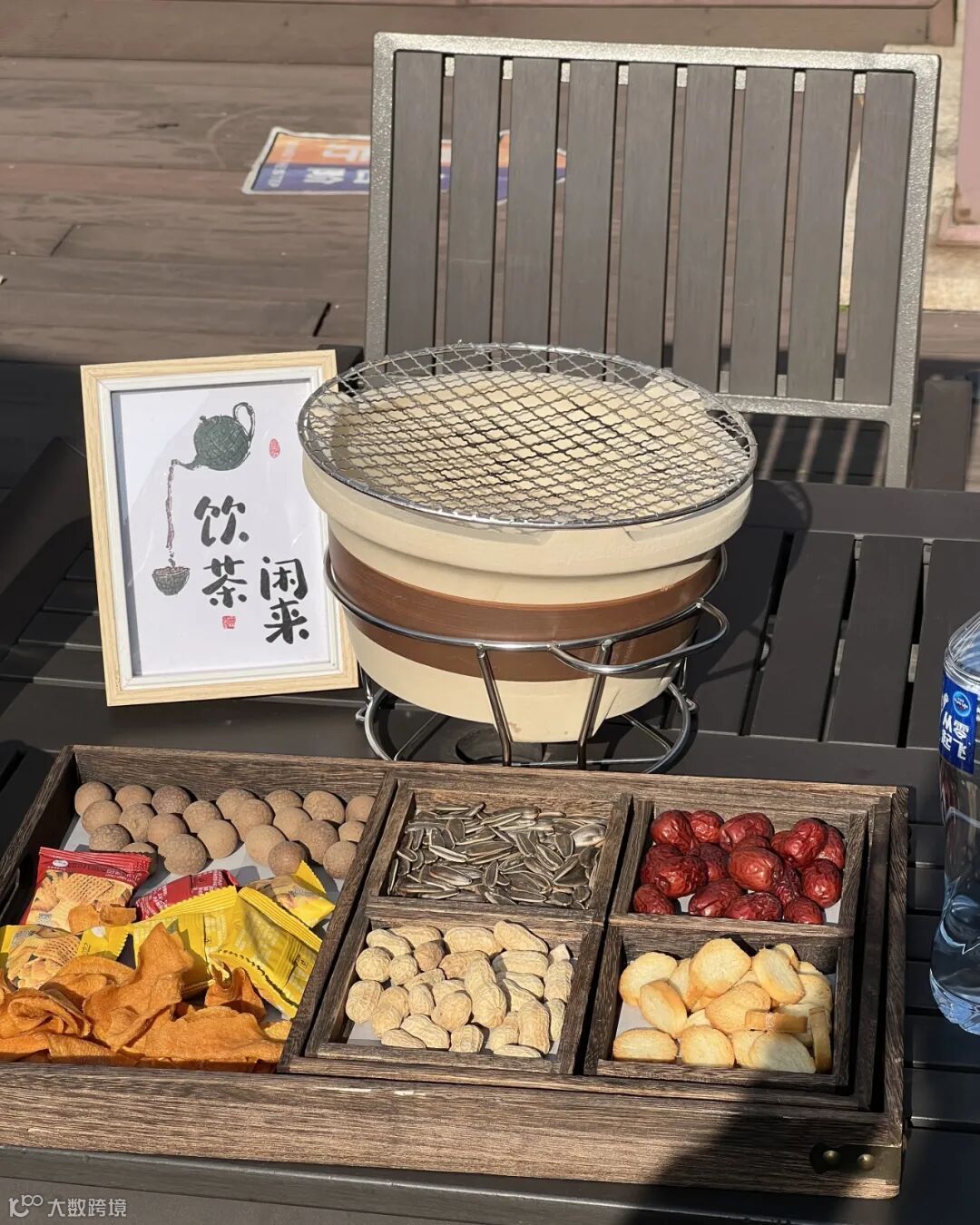 爬完小山坡,回到民宿。惊喜发现工作人员已经为我们搭建起炉子,生起炉火,放上水果,准备围炉煮茶啦~温柔的阳光照射在桌面上,氛围感十足啊!