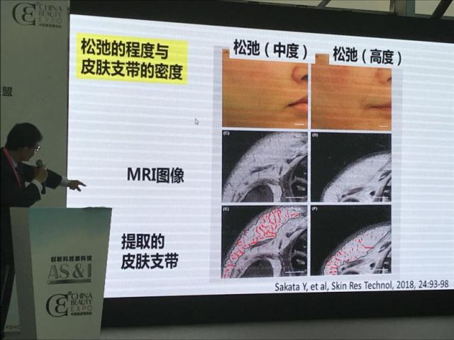 脸颊部的MRI图像及皮肤组织染色成像表明,越松弛的皮肤起皮肤支带的密度越低。因为老化的机体血中氧化LDL增加,皮下脂肪释放恶心脂肪因子(4-1BB上升,降低腱细胞的RC的构成成分)。