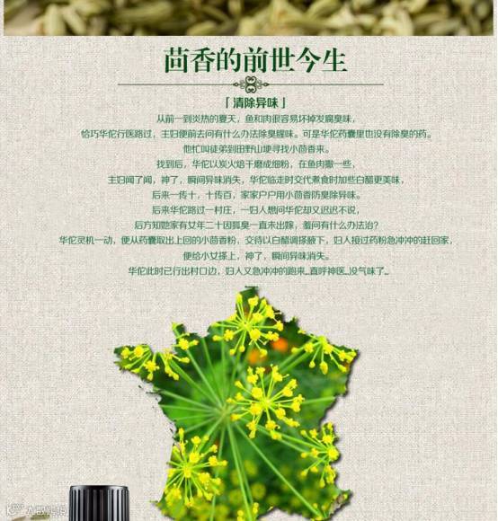 茴香中含有挥发油、脂肪油、蛋白质、树脂、塑胶质和糖类成分,其中挥发油主要含有反式