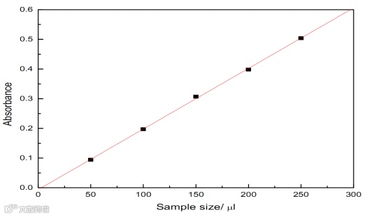 醇提过柱无患子皂苷的进样量与吸光度关系如图3所示。