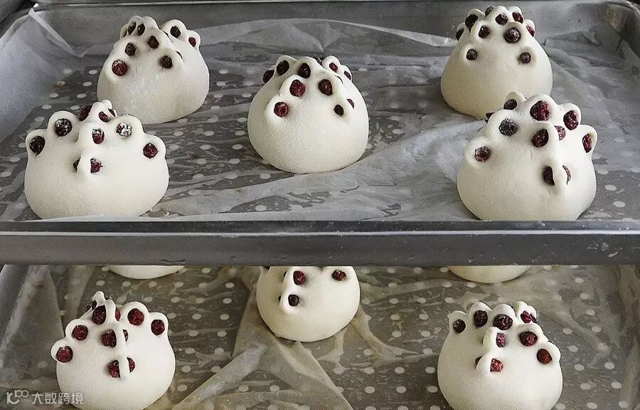 山东省某手工馒头作坊的工人在摆放大枣饽饽。胶东人蒸大枣饽饽,是为了期盼小日子蒸蒸日上,做生意早日发达。