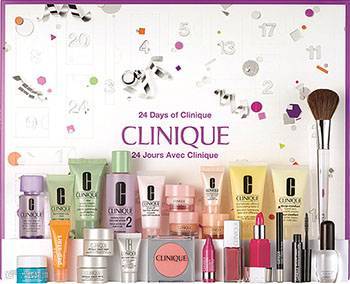 CLINIQUE 倩碧 2017 圣诞24天限量护肤彩妆日历涵盖丰富,包括水磁场保湿面霜、磁场水嫩保湿滋养面膜、倩碧黄油(无油版)、按摩霜等护肤品,也包含了迷你唇彩、卸妆水、眼线笔、睫毛膏、腮红3.1g等彩妆类。
