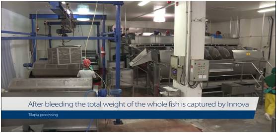 每台切鱼片机可控制罗非鱼的输入量且对每台切鱼片机的输出产品进行称重