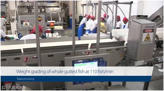 以每分钟110条鱼的速度,对去除内脏后的鱼按重量进行分类