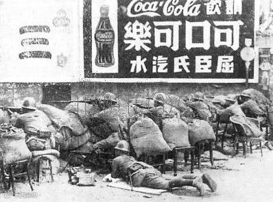 10/10 图为当时淞沪会战中的日本士兵,旁边的广告牌非常的显眼。