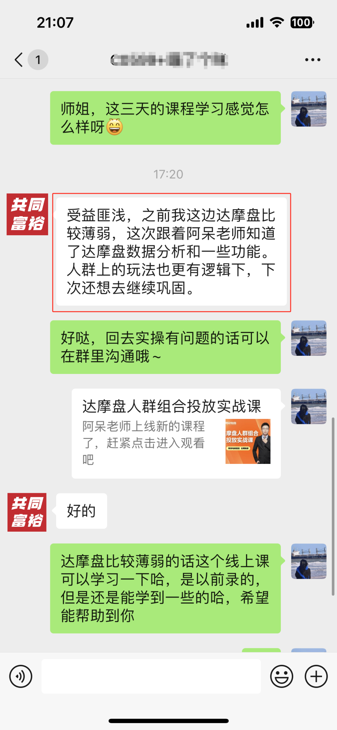 关于本期课程学员反馈