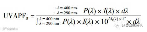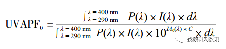 (2)根据计算的校正因子 C 以及样品的吸收光谱,计算样品照射前的体外 UVA 防护指数 UVAPF0。计算方法如式 3。