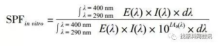 其中 E(λ)为红斑作用光谱, I(λ)为 SPF 测试的 UV 光源的辐照强度, A0(λ)为紫外照射前样品板的平均单色吸光度。