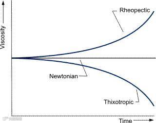 有的流体随着剪切时间增加,粘度上升,比如石膏。