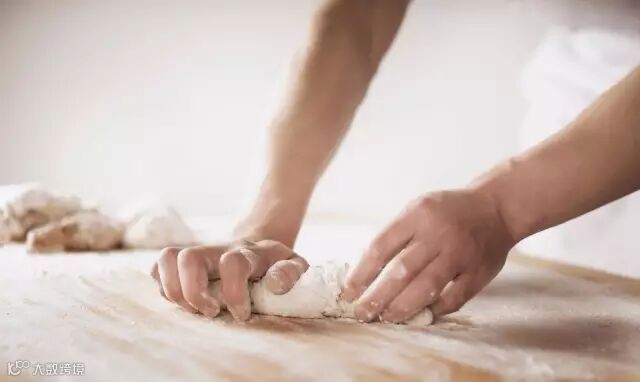 面粉与酵母、清水拌匀后,要充分揉面,尽量让面粉与清水充分结合。面团揉好的直观形象就是:面团表面光滑滋润。水量太少揉不动,水量太多会沾手。