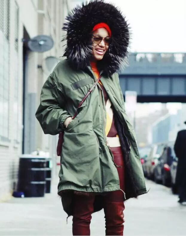 利落帅气的经典军装风格为主,永不退下时尚舞台的军绿面料,搭配兔毛、貂毛、狐狸毛等奢华皮草打造绚丽内里和毛边领子,瞬间让人觉得暖暖的,蓬松的毛毛让你显得俏皮亮丽,这就是它最大的亮点。