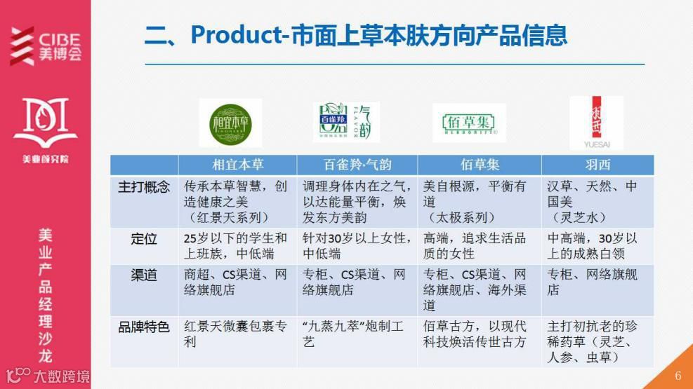 美业颜究院产品经理彭文乐先生向大家展示了当前市场9大草本品牌各自的特点。