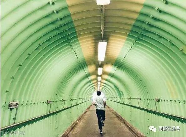 元朗有一条隧道是专门给行人走的,旁边都是漆成绿色,天花板是黄色的,隧道里面有明亮跟昏暗的灯,制造出像是科幻片的神秘感。从隧道入口的中间处往隧道里面拍,可以拍出对称性十足的照片,看起来是不是很美?