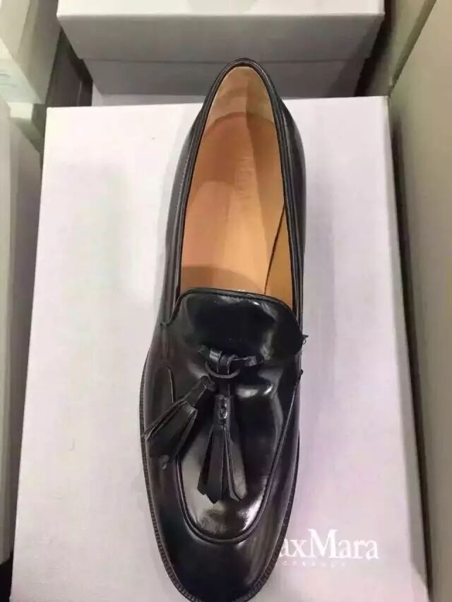 MaxMara剪标店黑色豹纹中跟小皮鞋