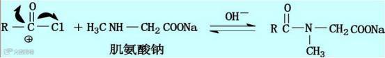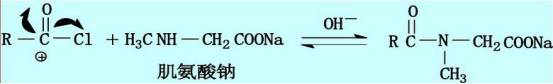 N-脂酰氨基羧酸盐类表面活性剂是脂肪酰氯和氨基酸在碱性水溶液或其它有机溶剂中一次反应完成制得。