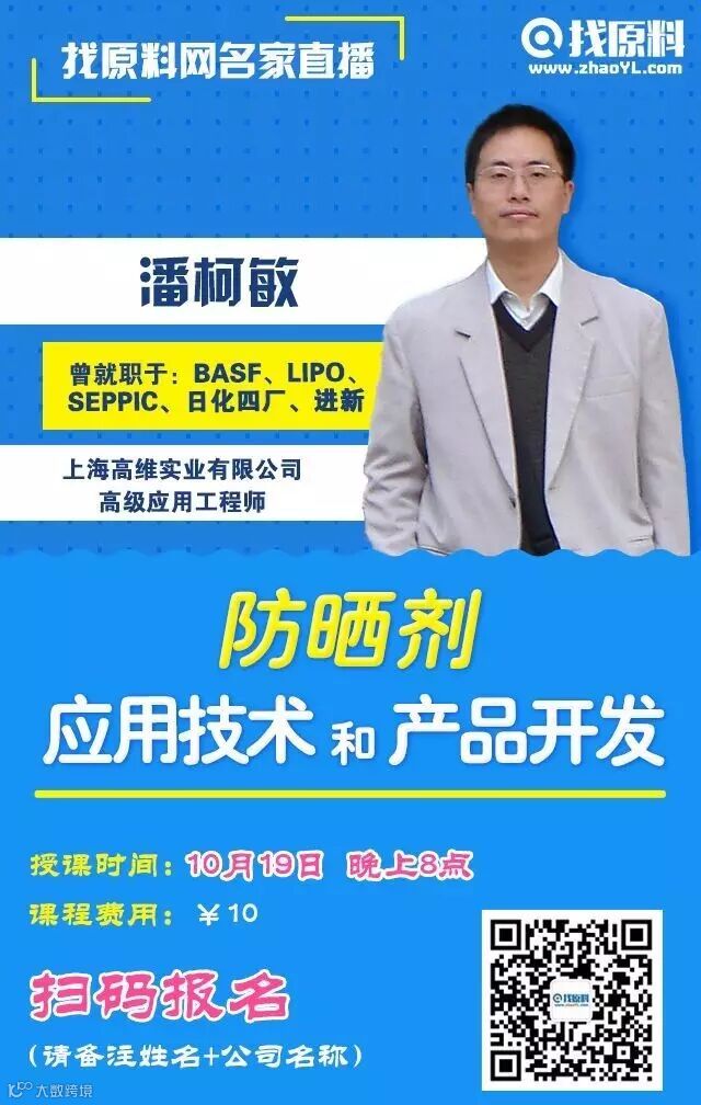 潘工,曾就职于BASF(中国区)、LIPO、SEPPIC、日化四厂、进新等国内外大型企业,专注于化妆品应用实验室的创立和产品开发二十余年,具有相当丰富的实战经验。