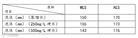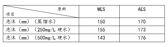 表1:MES与AES发泡性能以及抗硬水性能研究