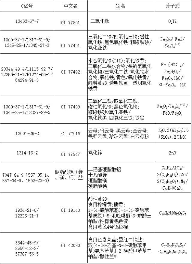 我国《化妆品安全技术规范》(2015)中规定,准用着色剂有157种,且对于不同着色剂的使用范围及用量都进行了限制,详情这里不细说,大家可以参考《化妆品安全技术规范》。